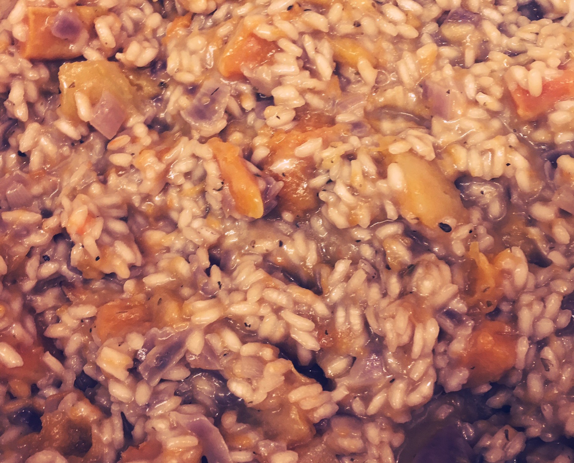 In honour of Halloween I was planning on making pumpkin risotto, but Tesco had sold out so I opted for butternut squash. The end result was very tasty, it just looks like pumpkin brains!